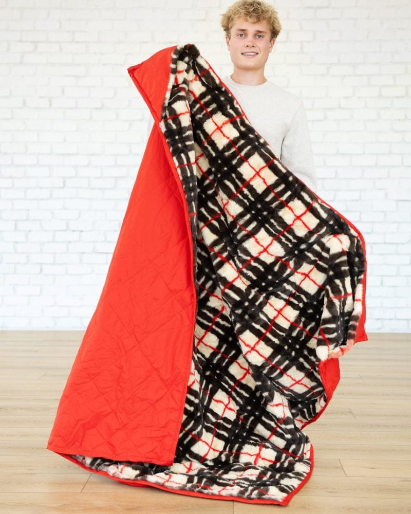 $22.50 – $44.850 out of 5Outdoor blanket perfect for a picnic. watching sports games. camping. the rodeo and more! Outer lining is solid red with a red. black and white plaid plush fabric interior. Dimensions:?Sizing is approximate and based on pre-sewn measurements.? Kids 36×48 (Recommended for kids age 2-7)? Regular 60×63 Details: Water resistant quilted backing Plush minky lining Hood….