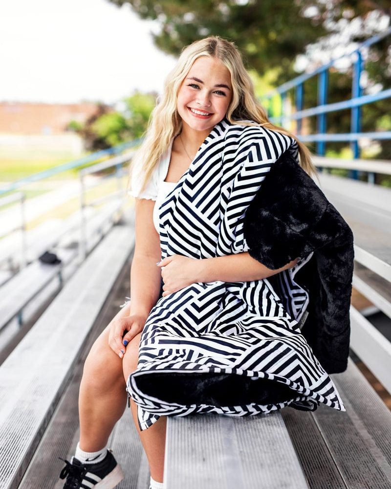 0 out of 5$299Original price was: $299.$89.70Current price is: $89.70.Outdoor blanket perfect for a picnic. watching sports games. camping and more! Outer lining is a geometric black?pattern?with a?solid black?plush fabric interior. Dimensions: Approximately 60×63 Water resistant quilted backing Plush minky lining Hood. Folds into a pocket when not in use. detachable via zipper. Hand-holds in two corners to make it easier to wrap around…