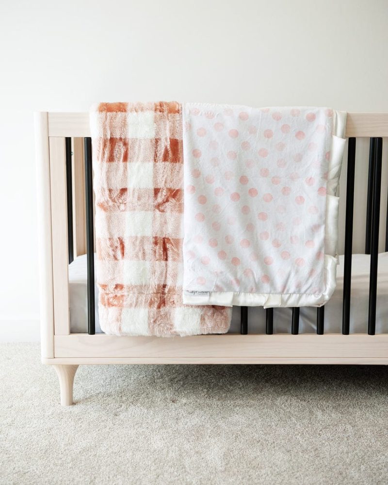 $3.75 – $14.850 out of 5Details:?This?adorable dotty pattern pairs perfectly with snuggles. Blushing Dots?is?a Minky Couture mid-weight pattern blanket. Mid-weight blankets have shorter minky threads that create a silky feel. This blanket is backed with a apricot vanilla plush minky fabric and bordered in a cream?satin ribbon. Dimensions: Sizing is approximate and based on pre-sewn measurements. Mini: 10×18 0.5 lbs…