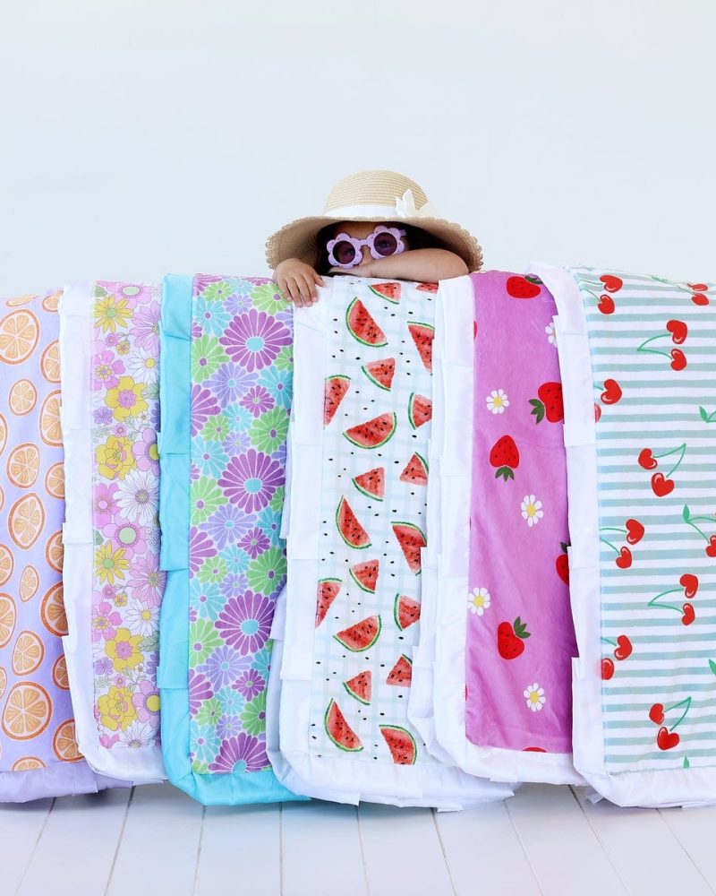 $3.75 – $35.850 out of 5Details: Embrace the gentle elegance of our Blue Pinwheel Blanket featuring a soothing light blue watercolor design reminiscent of whimsical pinwheels in motion.? Wrap yourself in its tranquil hues. inviting a sense of calm and relaxation into your home.?This blanket is backed in a light blue plush minky and sewn with a white?satin ruffle. Dimensions:…