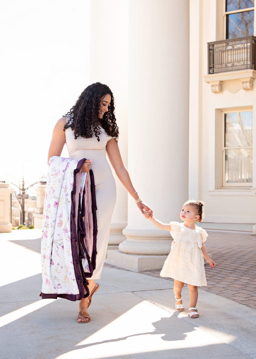 • Details:?Wrap yourself in the beauty of a blooming meadow with the Daisy Plum Wildflower Blanket. This printed design features delicate purple watercolor flowers on a crisp white background. creating a soft and elegant look. This blanket is backed in a blueberry plush minky with a plum?satin ruffle.