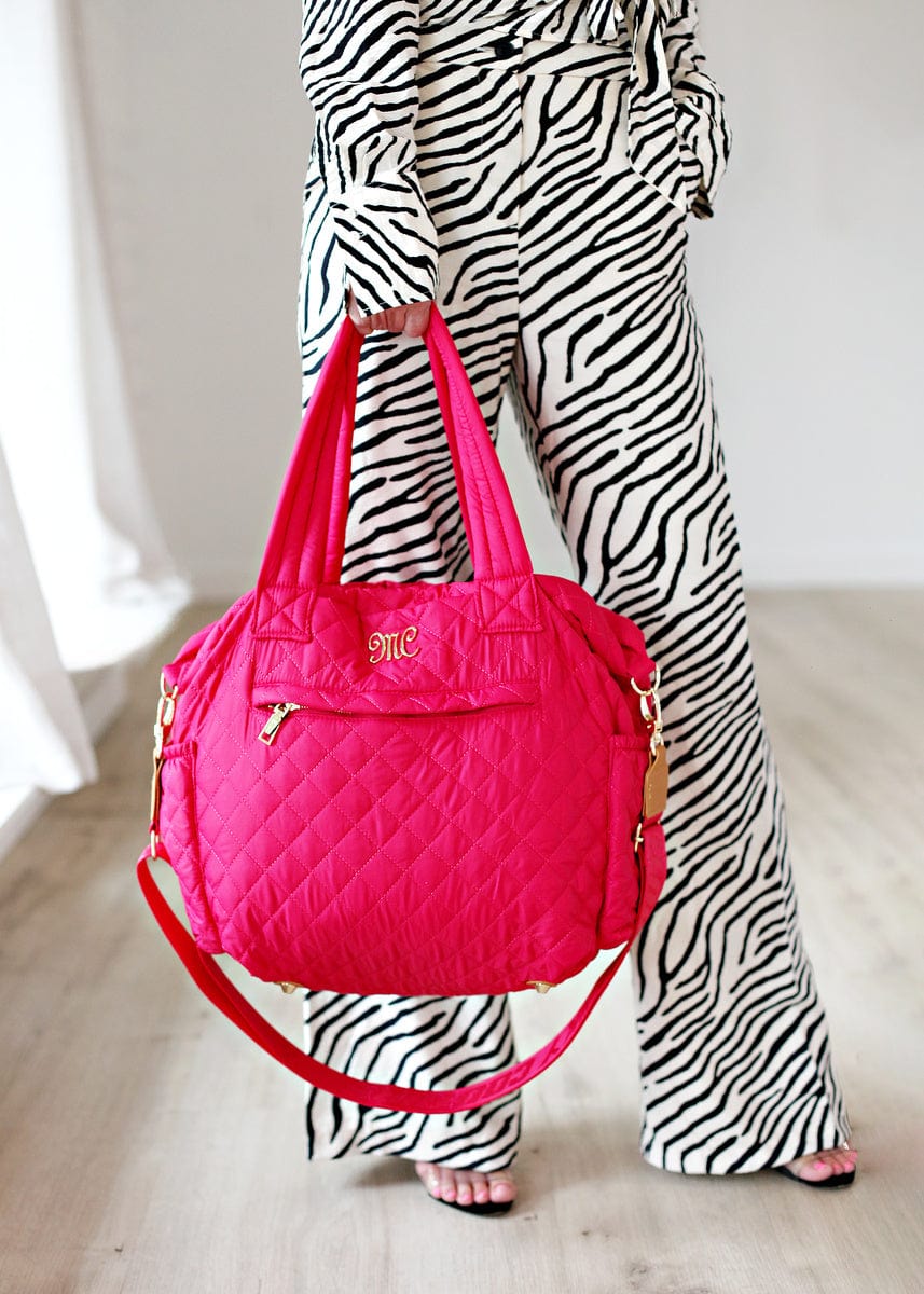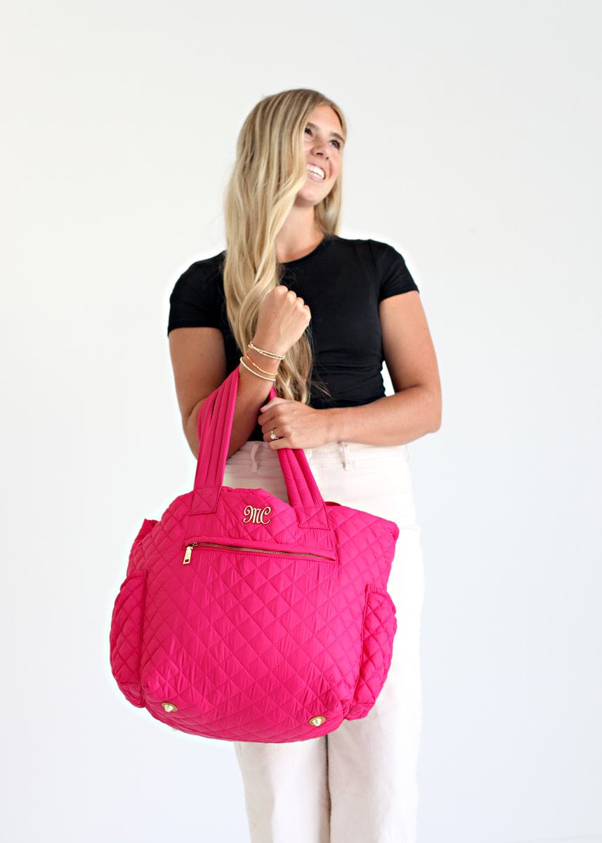 Introducing the Everything Bag – Magenta – the epitome of versatility and style! This exceptional bag effortlessly combines a fashion-forward quilted texture with a highly functional design. Whether you’re embarking on a travel adventure. need a reliable diaper bag. hitting the gym. or simply seeking an everyday companion. the Everything Bag has got you covered. With a dozen pockets and easy-to-clean material. it offers ample storage while maintaining a pristine appearance