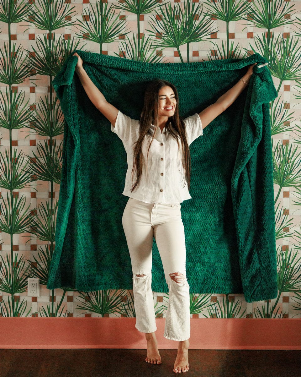 • Details: Wrap yourself in the soft comfort of the Feathers Jade Blanket. This plush blanket showcases a rich jade green hue. adding a refreshing and cozy touch to any setting.