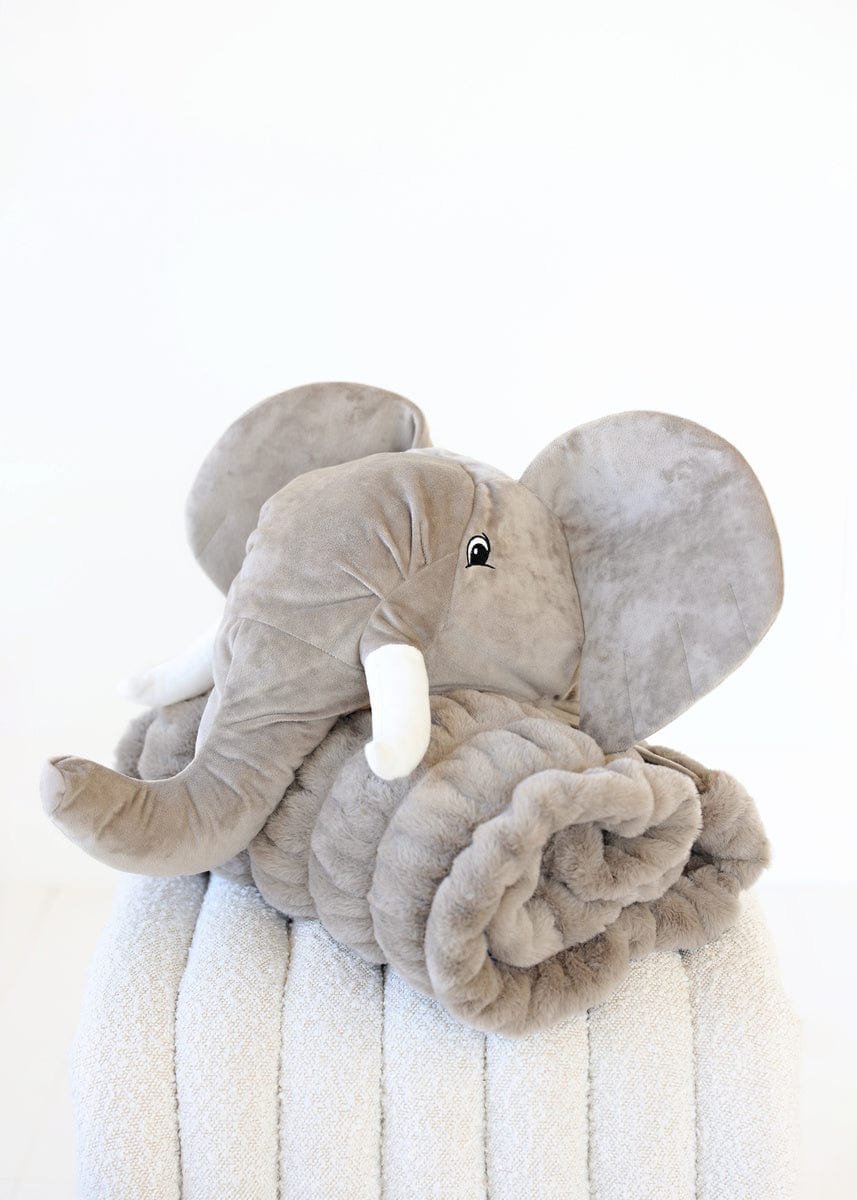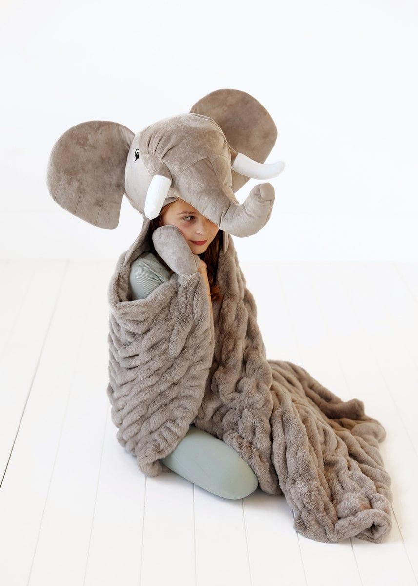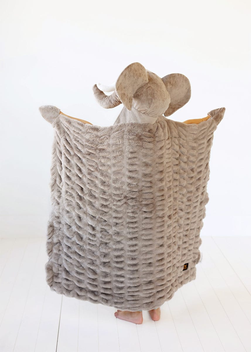 Introducing Huggable Elephant. the ultimate companion for your little one’s cozy adventures! This soft gray blanket is designed to bring comfort and joy to every snuggle session. With its charming elephant head. complete with oversized ears and a sweet smile. it adds a delightful touch to cuddle time. Measuring 35×50. this plush and stretchy blanket creates a warm embrace for imaginative play. Watch as your child explores enchanting jungles and embarks on whimsical journeys with their adorable friend. Huggable Elephant!