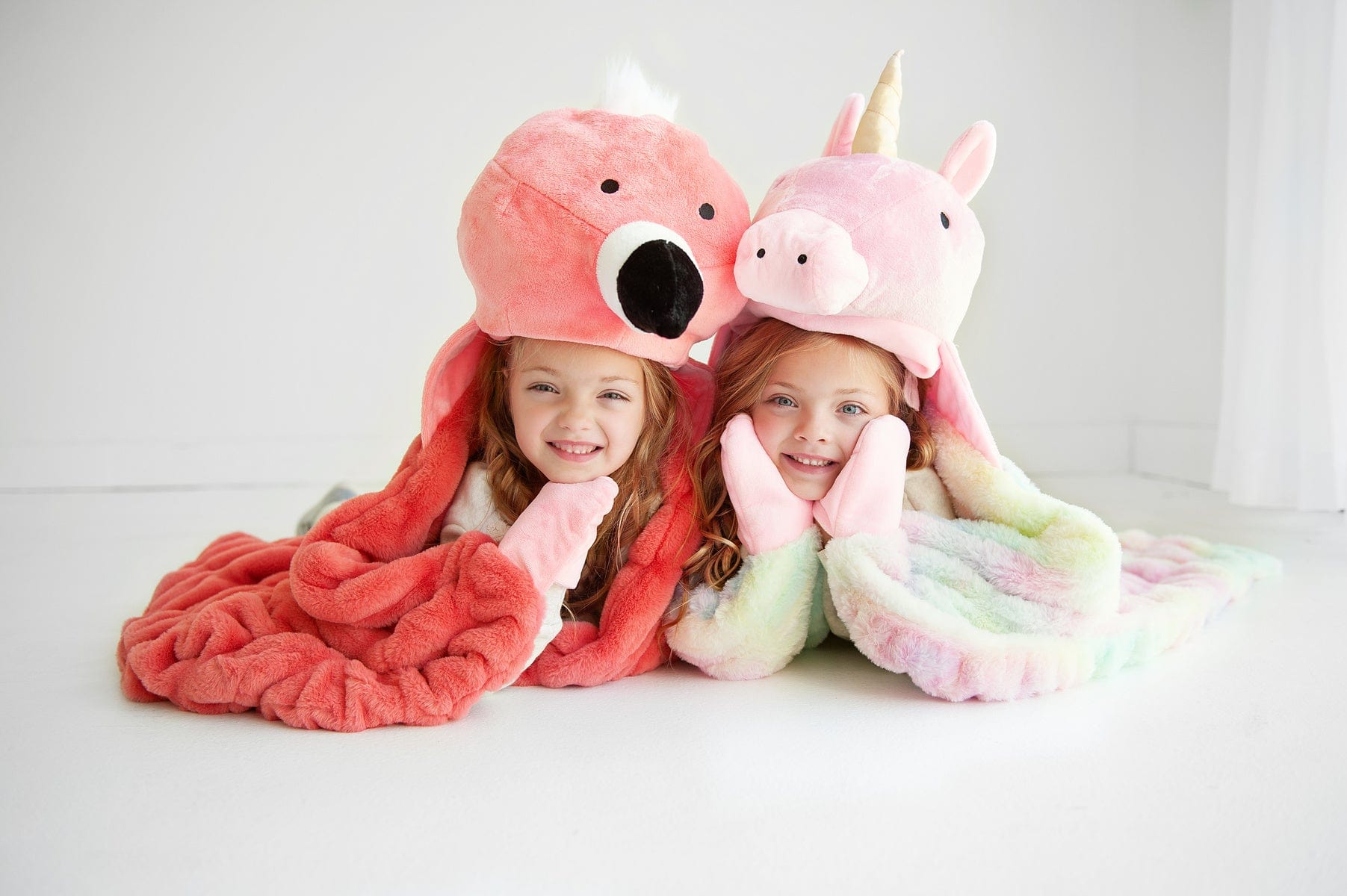 Introducing Huggable Unicorn. the ultimate companion for little ones seeking comfort and imagination. This enchanting children’s blanket features a delightful unicorn head hood. complete with a shimmering gold horn and a mane in a vibrant rainbow of colors. The pastel tie-dye stretchy blanket is perfect for cuddling. measuring 35×50 in size. With pink hand inserts and a matching tail.?this huggable not only keeps your child cozy. but also sparks imaginative playtime adventures. Watch as they embark on magical journeys with their new. huggable friend!