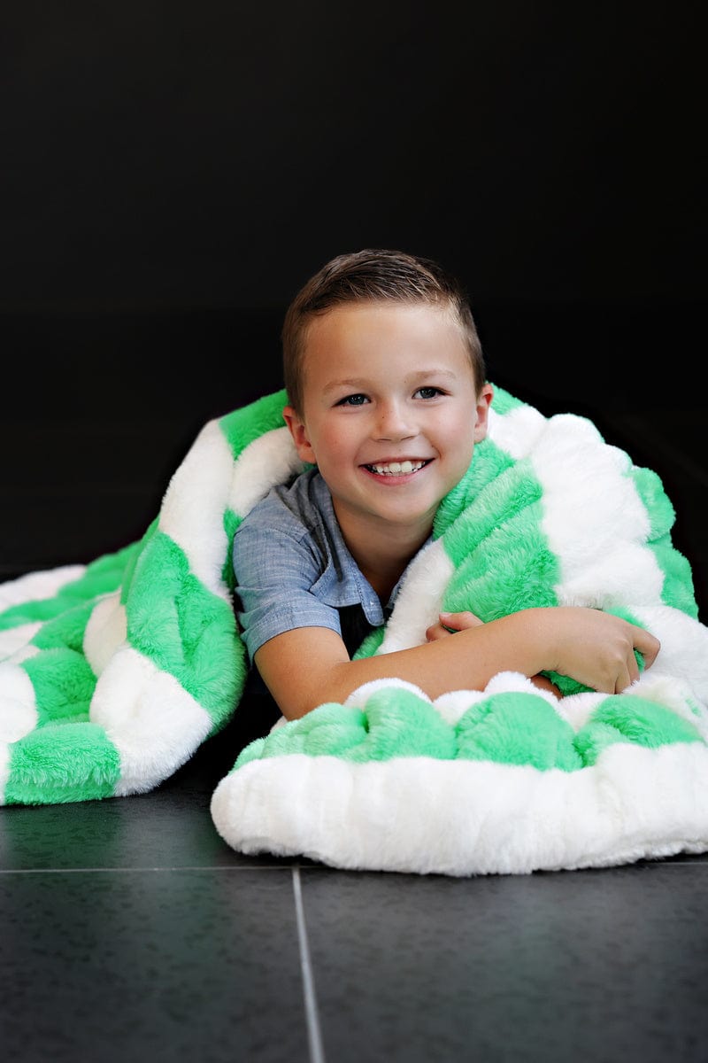 • Details: Wrap yourself in the fresh and vibrant Hugs Green Apple Blanket. part of our Candy Shop Collection. Featuring lively green and white stripes. this stretchy blanket brings a crisp. playful touch to any space. Perfect for cozying up. it’s as refreshing and sweet as your favorite green apple treat.