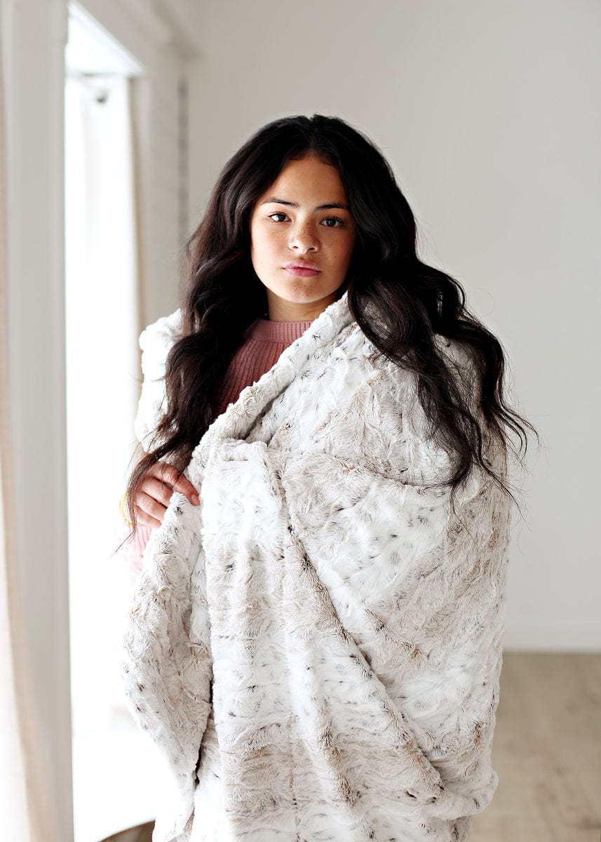 • Details: Cozy up with the Sandra blanket. a plush blend of warm tan and creamy hues with a soft. barely-there hint of animal-inspired pattern. Its subtle design and luxurious texture create an inviting. timeless look perfect for relaxing moments.