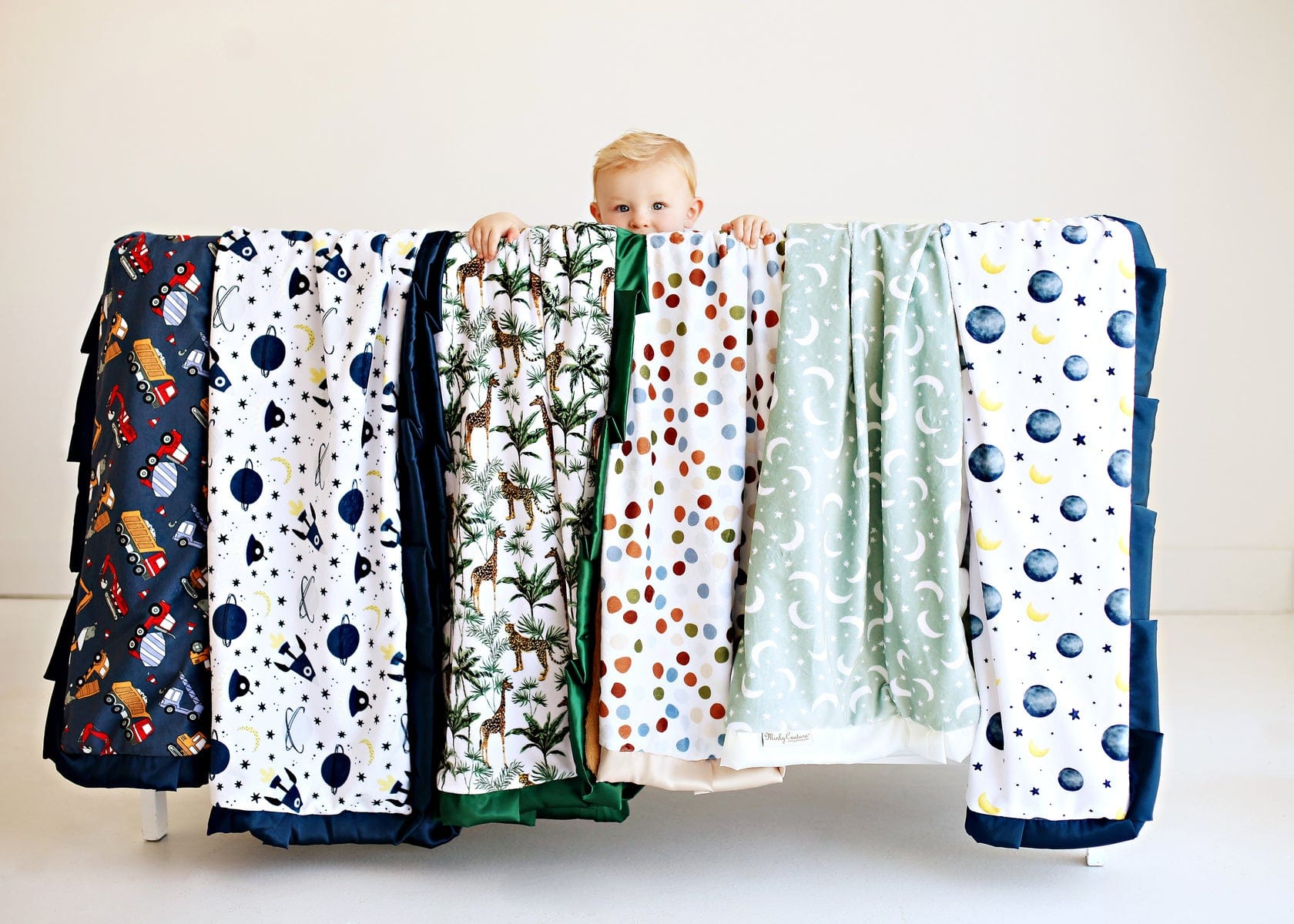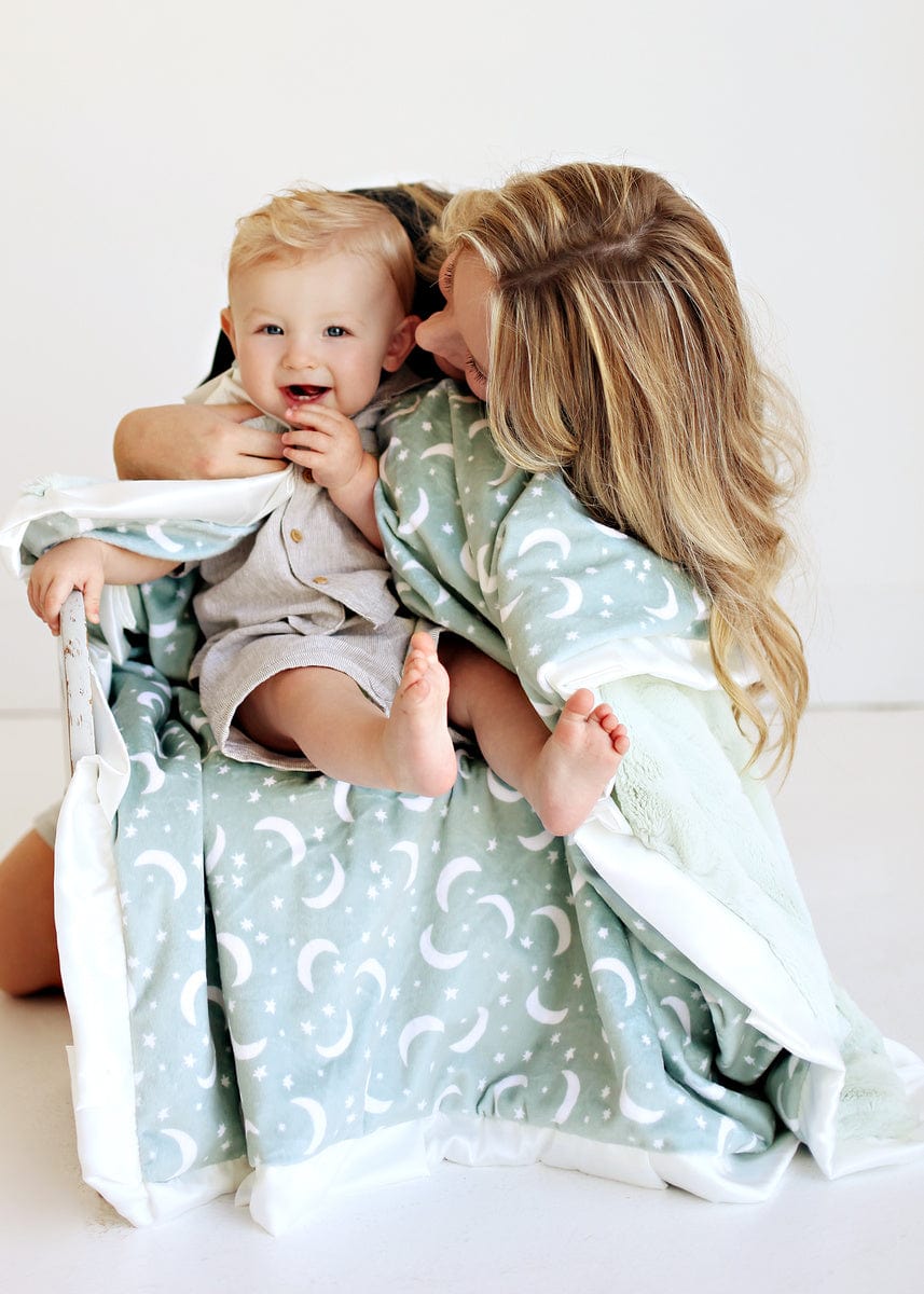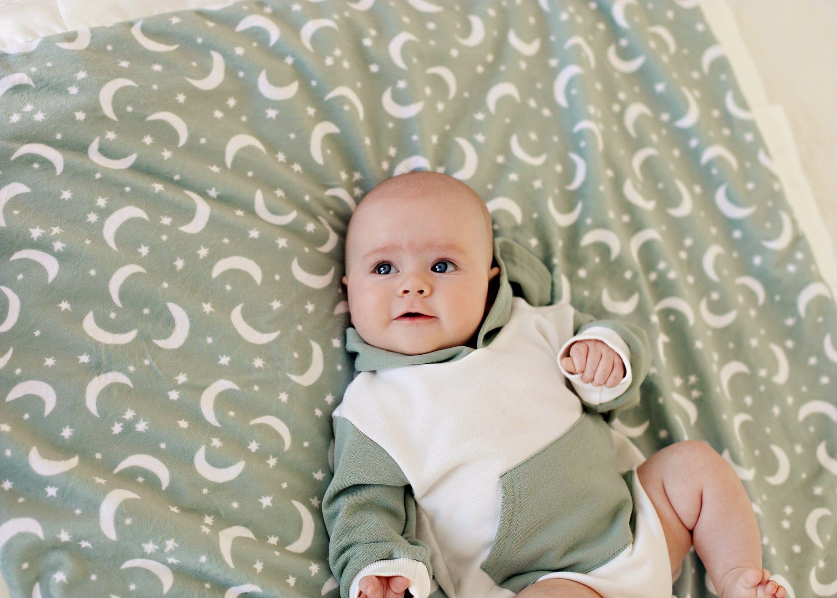 • Details:?Creamy stars and crescent moons adorn a gentle sage green backdrop. creating a gender-neutral masterpiece. Crafted with care from minky fabric. it promises comfort and charm for your little one’s dreamy nights.