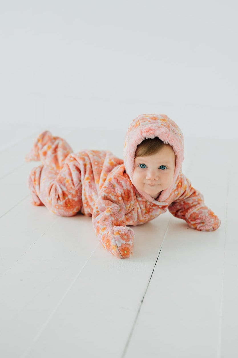 Our Winter Minky Jumpsuit was created to keep your precious little ones extra cozy while on their adventures in the cold weather. Including a Minky Couture polyester shell and plush lining. your babe will be bundled up. staying extra warm and cozy!
