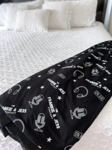 0 out of 5$129Original price was: $129.$19.35Current price is: $19.35.Details: In collaboration with The Frankie and Jess Podcast. a former radio show turned podcast. Podcast can be found on Apple Podcasts and Spotify. This blanket is backed in a?gray plush minky with a sewn with a black satin ruffle.? Dimensions: Sizing is approximate and based on pre-sewn measurements. Travel: 36×60 Machine wash alone in…